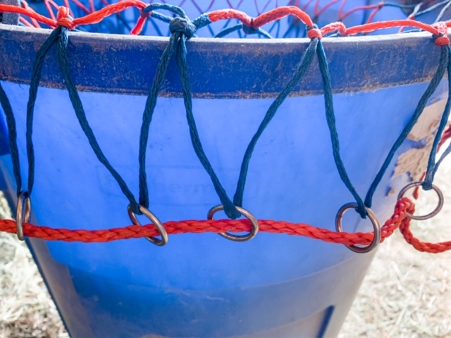 Both styles of hay nets have metal rings that connect the hay net to the string that you tighten. And I have found the metal rings help make it easier to fill the hay nets. Which is why I now only buy hay nets with the metal rings.